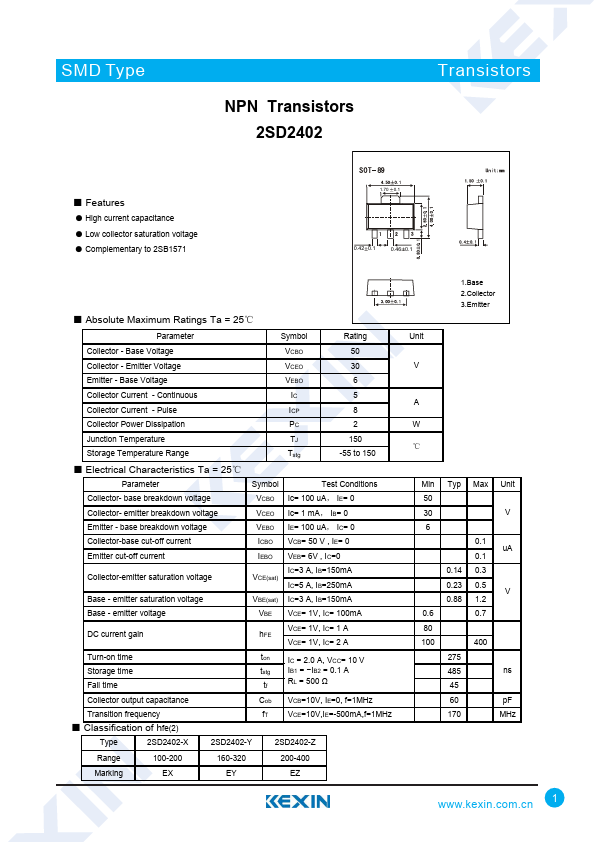 SMD Type NPN Transistors 2SD2402 Transistors ■.
