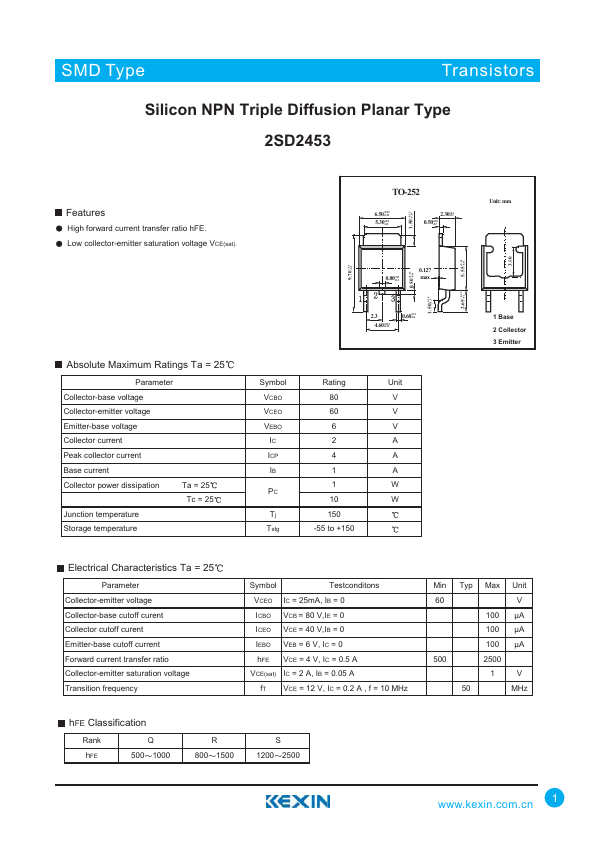 SMD Type Transistors Silicon NPN Triple Diffusion Planar Type.