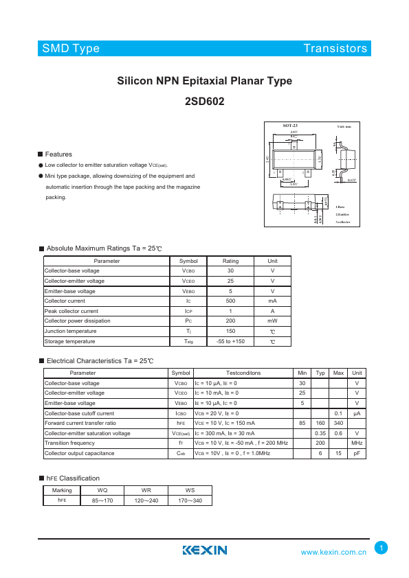 Overview: SMD Type TransistIoCrs Silicon NPN Epitaxial Planar Type 2SD602.