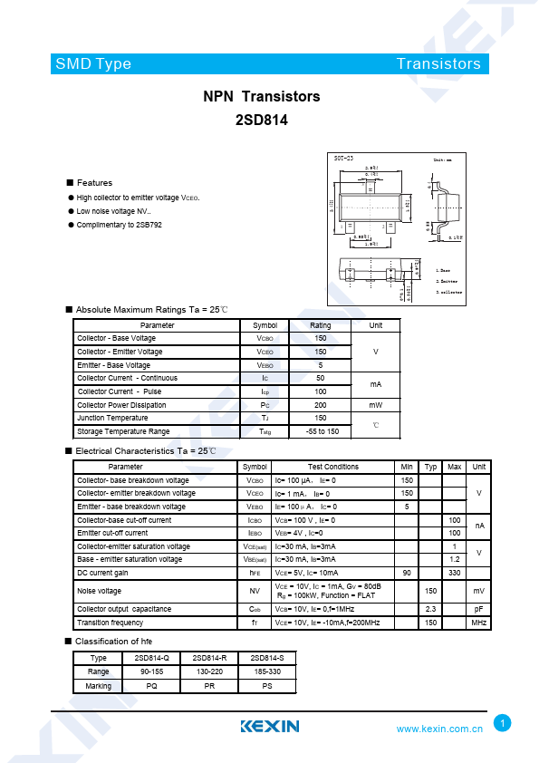 Overview: SMD Type NPN Transistors 2SD814 Transistors ■.