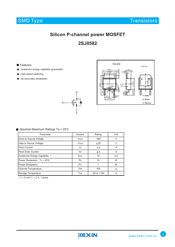 Avalanche energy capability guaranteed High-speed switching No secondary breakdown