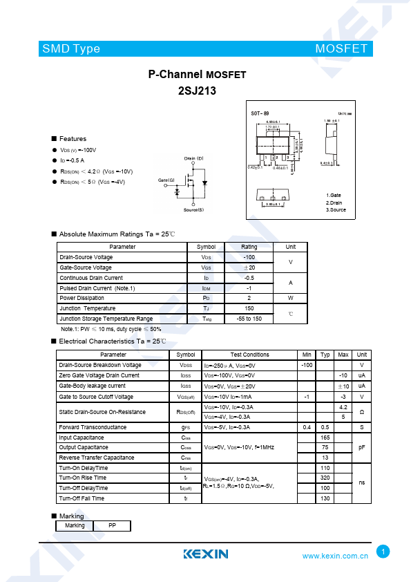 ● VDS (V) =-100V ● ID =-0.5 A ● RDS(ON) < 4.2Ω (VGS =-10V) ● RDS(ON) < 5Ω (VGS =-4V)