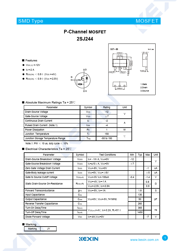 Parameter Drain-Source Voltage Gate-Source Voltage Continuous Drain Current Pulsed Drain Current (Note.1) Power Dissipation Junction Temperature Junction Storage Temperature Range