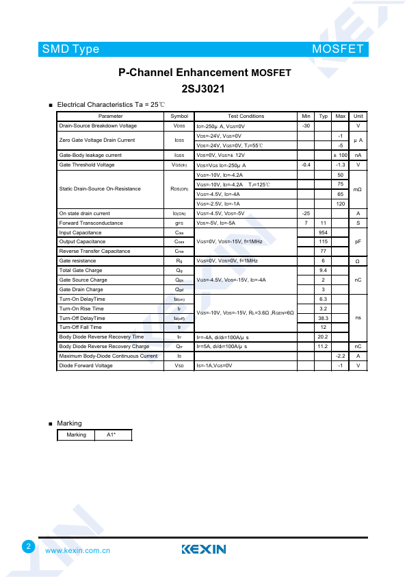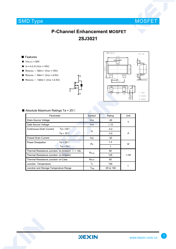 P-Channel Enhancement MOSFET 2SJ3021