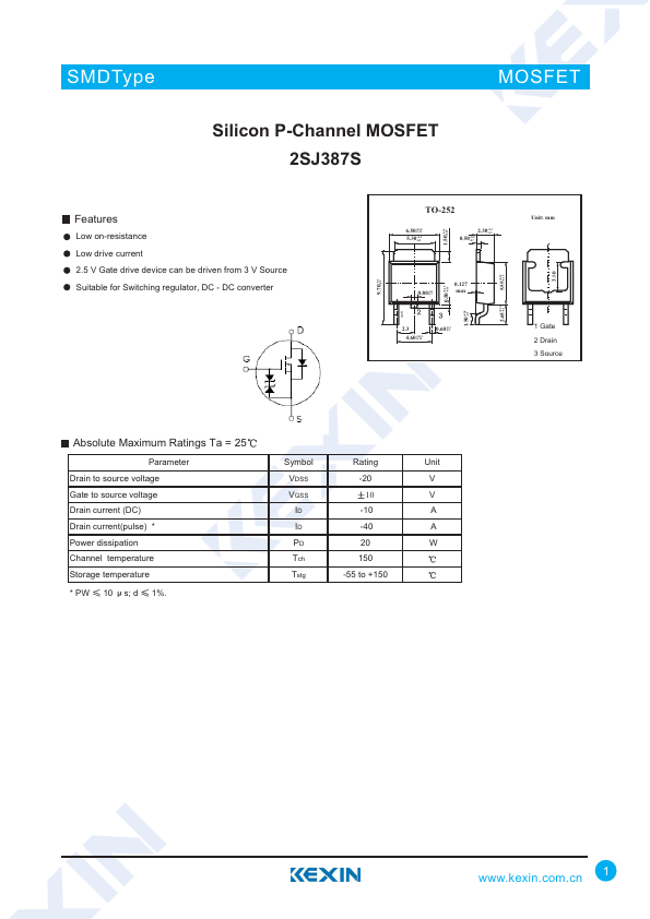 Low on-resistance Low drive current 2.5 V Gate drive device can be driven from 3 V Source Suitable for Switching regulator, DC - DC converter