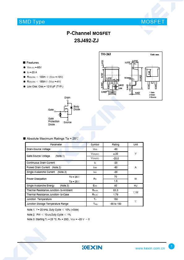 ● VDS (V) =-60V ● ID =-20 A ● RDS(ON) < 100m Ω (VGS =-10V) ● RDS(ON) < 185mΩ (VGS =-4V) ● Low Ciss: Ciss = 1210 pF (TYP.)