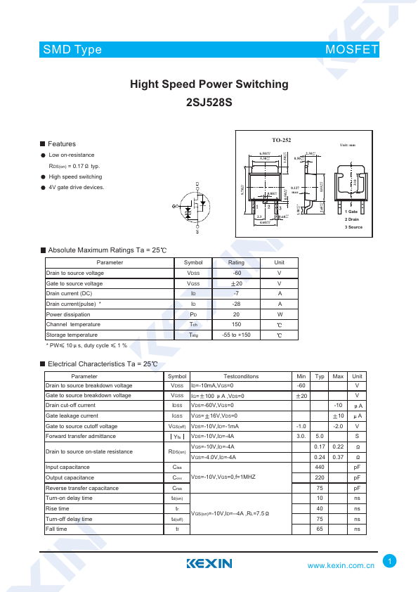 Low on-resistance RDS(on) = 0.17 typ. High speed switching 4V gate drive devices.