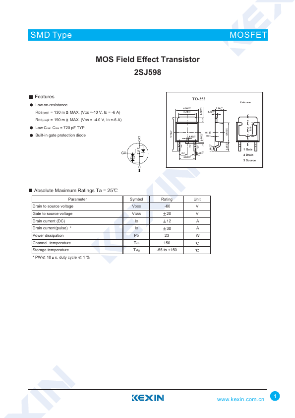 Low on-resistance RDS(on)1 = 130 m MAX. (VGS =-10 V, ID = -6 A) RDS(on)2 = 190 m MAX. (VGS = -4.0 V, ID =-6 A) Low Ciss: Ciss = 720 pF TYP. Built-in gate protection diode
