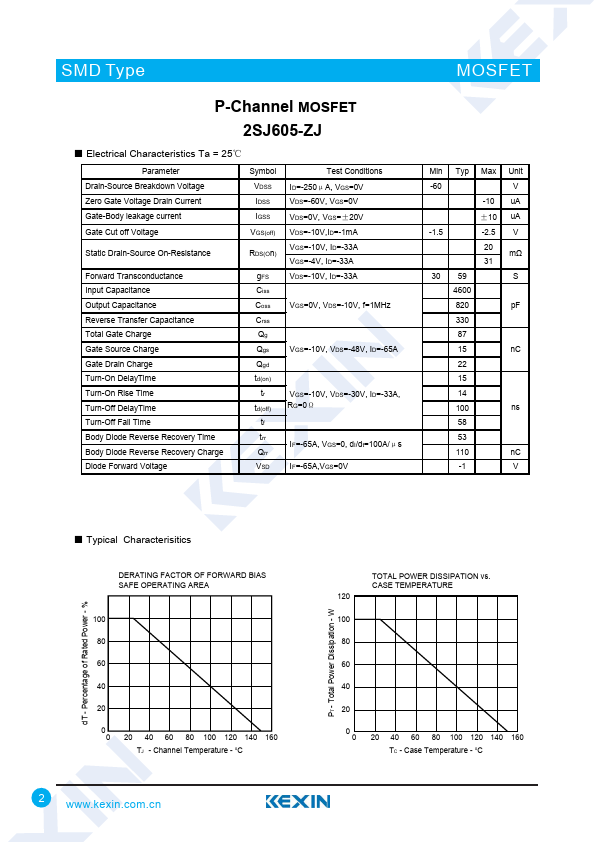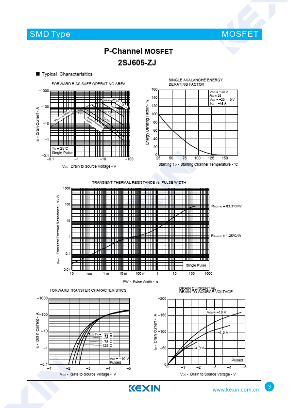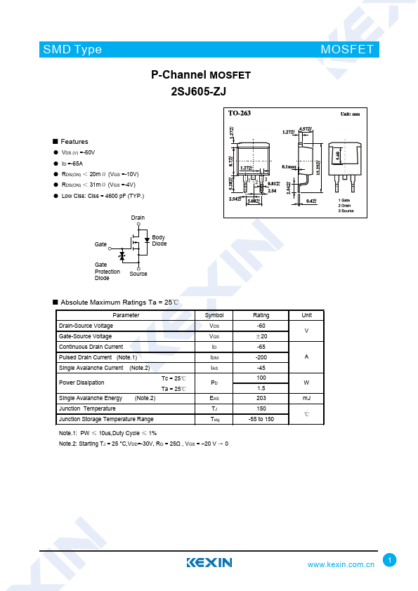 Note.1: PW ≤ 10us,Duty Cycle ≤ 1% Note.2: Starting TJ = 25 °C,VDD=-30V, RG = 25Ω , VGS = –20 V → 0