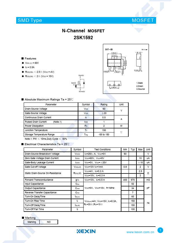 N-Channel MOSFET 2SK1592