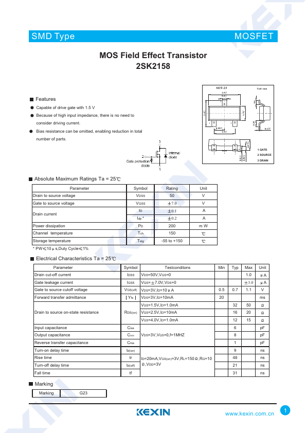 Capable of drive gate with 1.5 V Because of high input impedance, there is no need to consider driving current. Bias resistance can be omitted, enabling reduction in total number of parts.