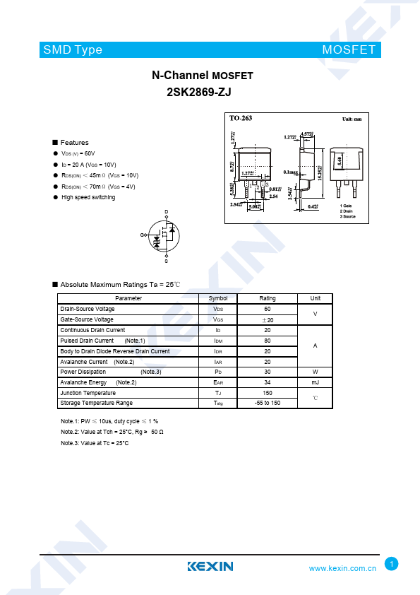 Note.1: PW ≤ 10us, duty cycle ≤ 1 % Note.2: Value at Tch = 25°C, Rg ≥ 50 Ω Note.3: Value at Tc = 25°C