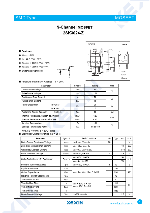 Note.1: L = 0.1mH, IL = 20A, 1 pulse