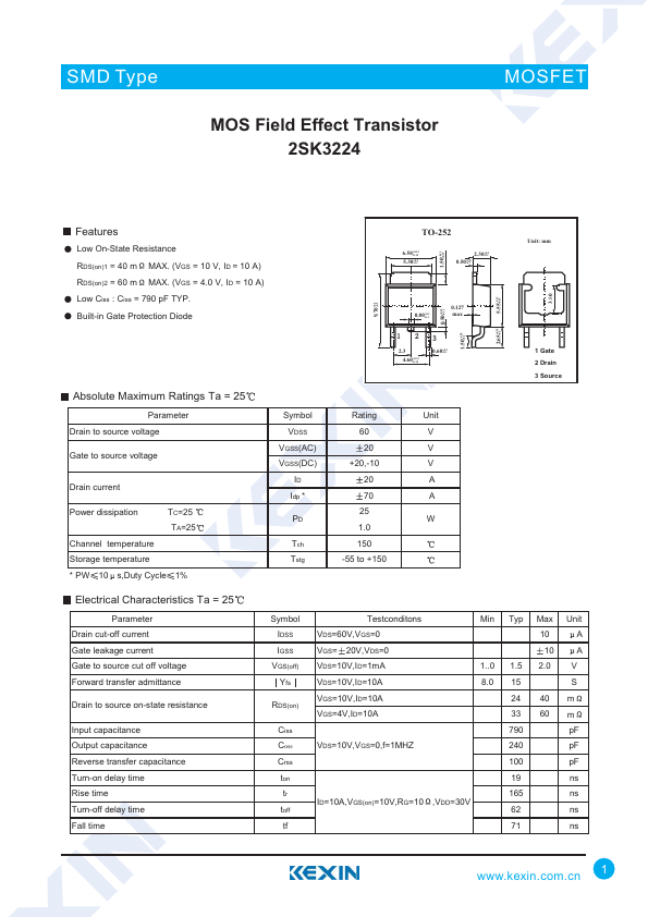 Low On-State Resistance RDS(on)1 = 40 m MAX. (VGS = 10 V, ID = 10 A) RDS(on)2 = 60 m MAX. (VGS = 4.0 V, ID = 10 A) Low Ciss : Ciss = 790 pF TYP. Built-in Gate Protection Diode