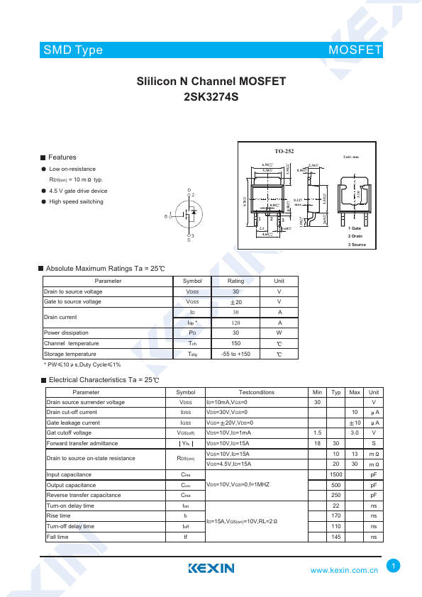 Slilicon N Channel MOSFET 2SK3274S