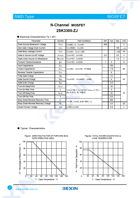 Note.1: PW ≤ 10 us, Duty Cycle ≤ 1 % Note.2: Starting TJ = 25 °C, VDD = 150 V, RG = 25 Ω, VGS = 20 V → 0 V