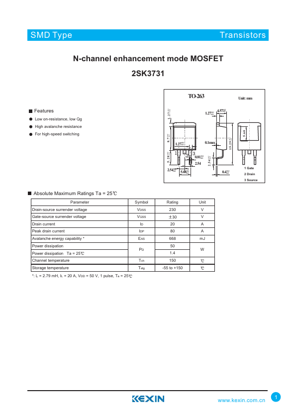 N-channel enhancement mode MOSFET 2SK3731