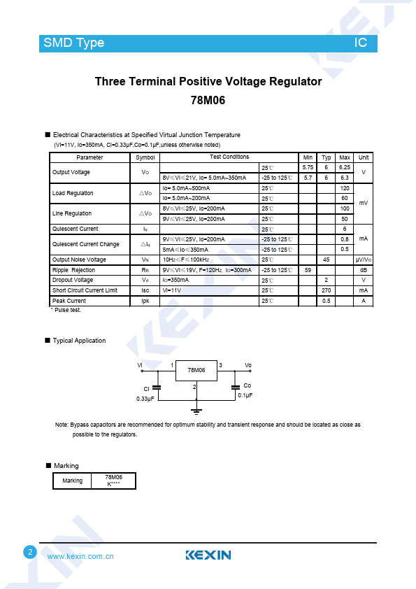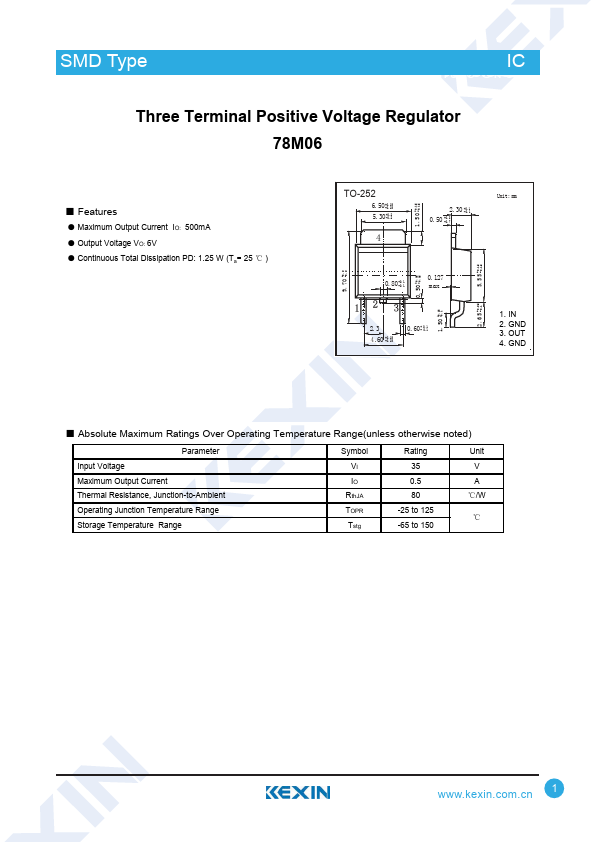 ● Maximum Output Current IO: 500mA ● Output Voltage VO: 6V ● Continuous Total Dissipation PD: 1.25 W (Ta= 25 ℃ )