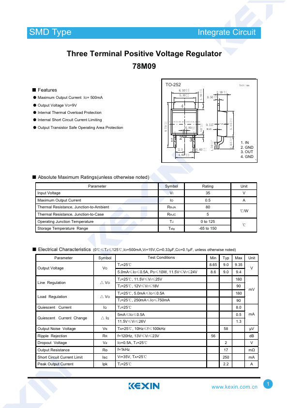 | 78M09 | 3-TERMINALS 0.5A POSITIVE VOLTAGE REGULATOR | Unisonic Technologies |
