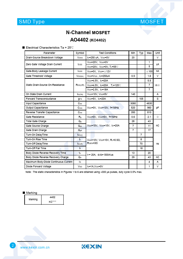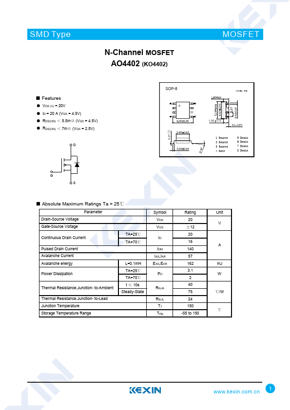 N-Channel MOSFET AO4402 (KO4402)