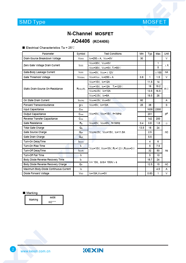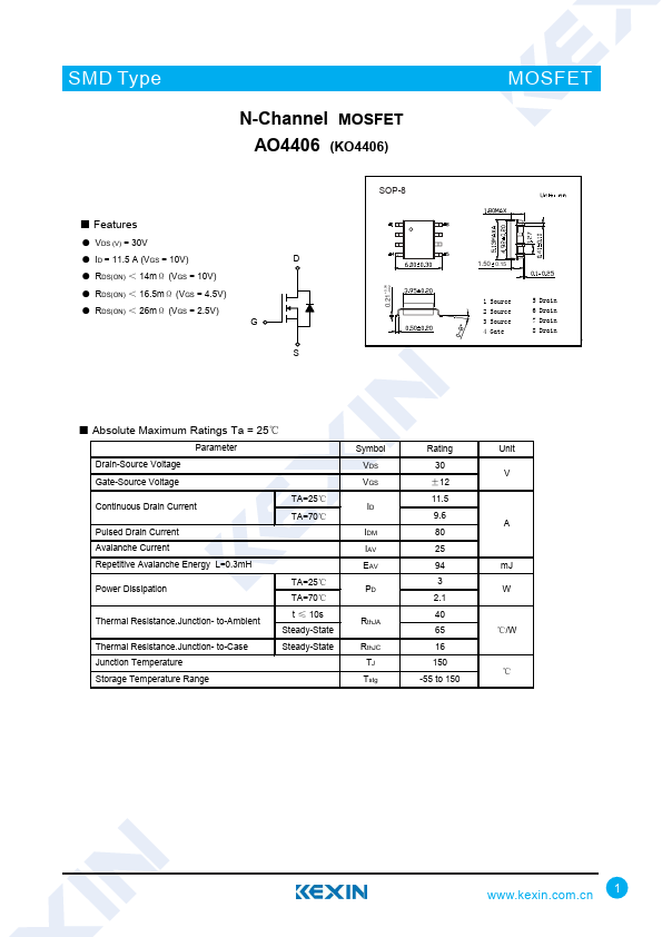 N-Channel MOSFET AO4406 (KO4406)