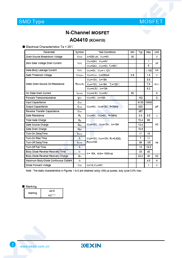 ● VDS (V) = 30V ● ID = 18 A (VGS = 10V) ● RDS(ON) < 5.5mΩ (VGS = 10V) ● RDS(ON) < 6.2mΩ (VGS = 4.5V)