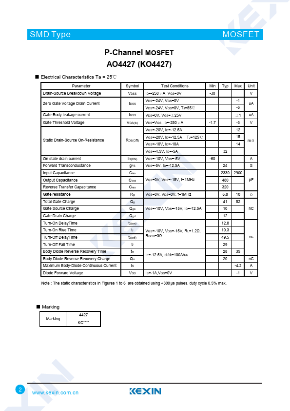 ● VDS (V) =-30V ● ID =-12.5 A (VGS =-20V) ● RDS(ON) < 12mΩ (VGS =-20V) ● RDS(ON) < 14mΩ (VGS =-10V) ● ESD Rating: 2000V HBM