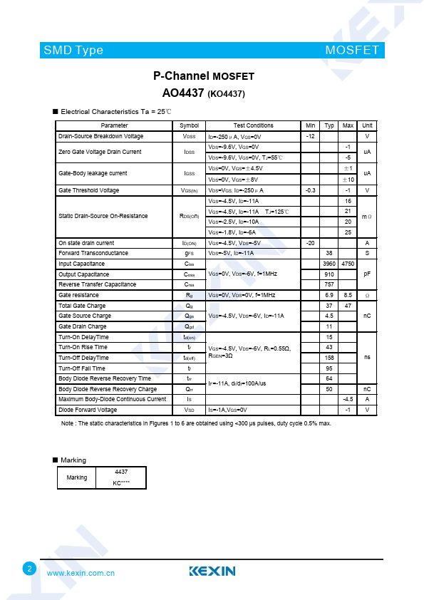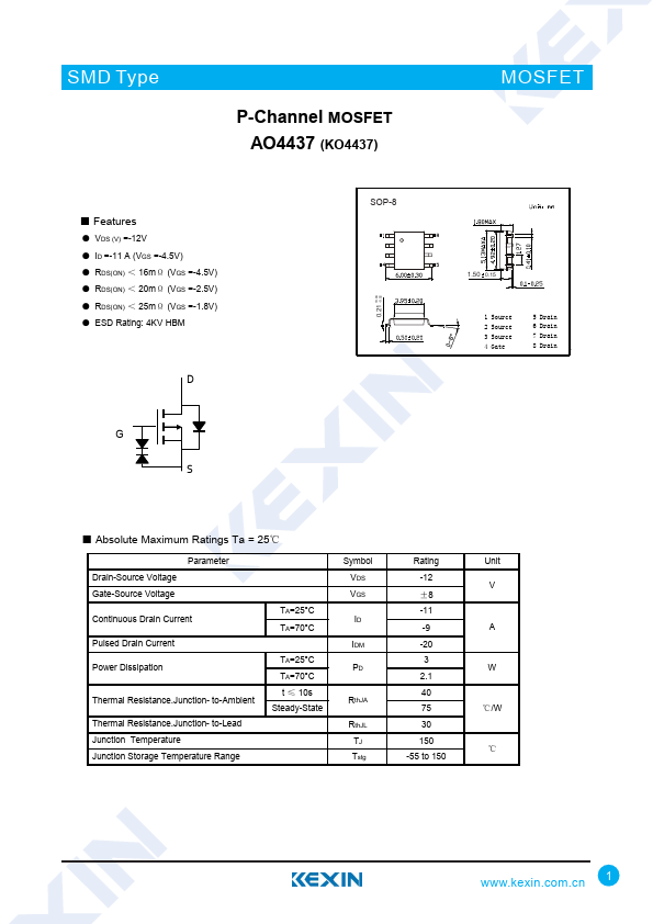 P-Channel MOSFET AO4437 (KO4437)