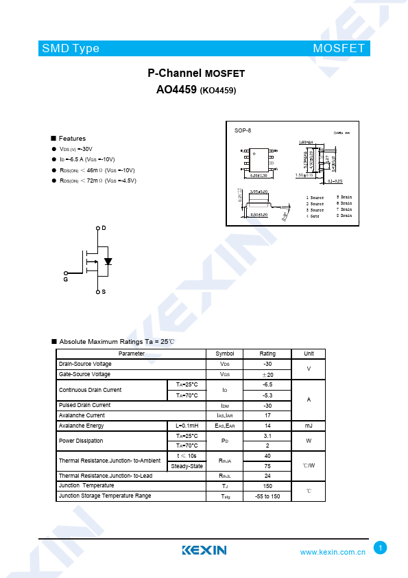 P-Channel MOSFET AO4459 (KO4459)
