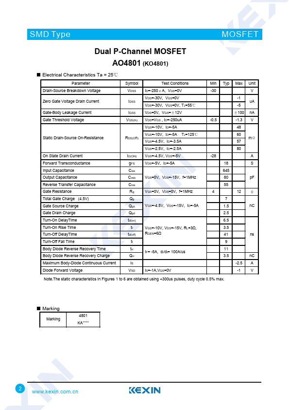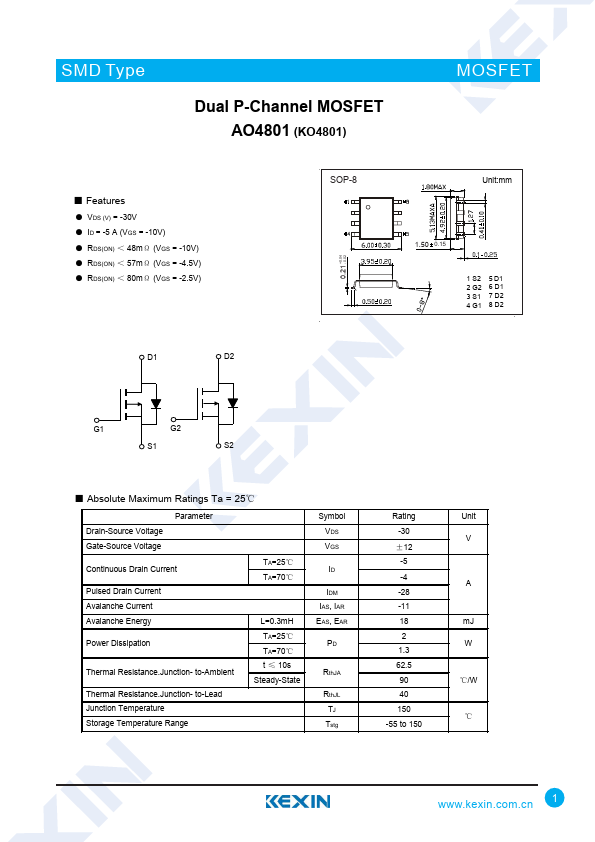 Dual P-Channel MOSFET AO4801 (KO4801)
