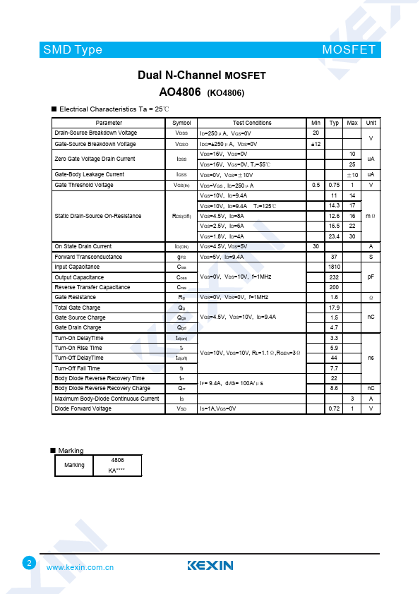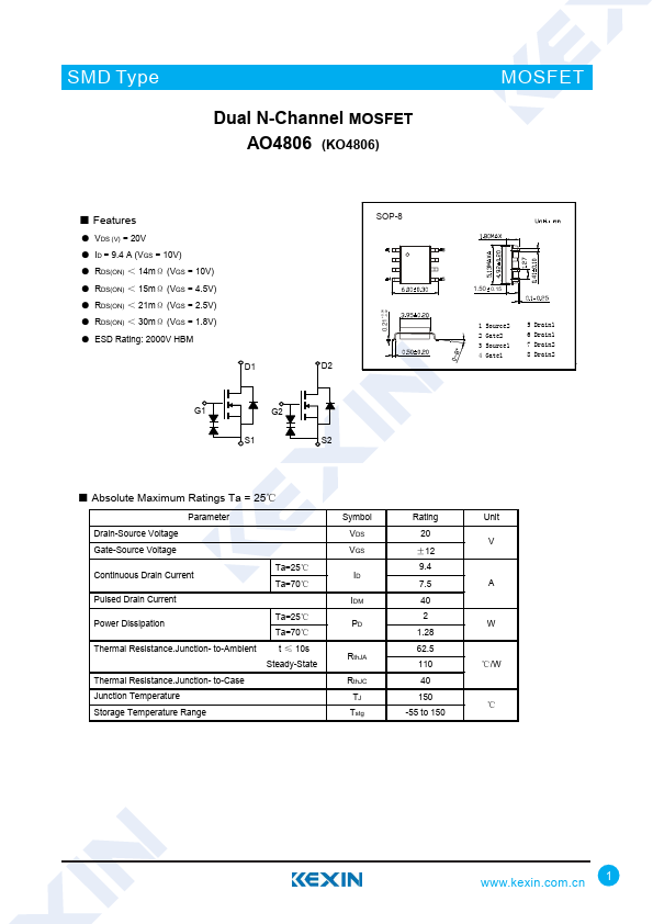| AO4806 | 20V Dual N-Channel MOSFET | Alpha & Omega Semiconductors |