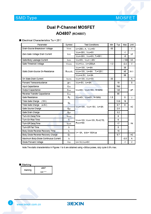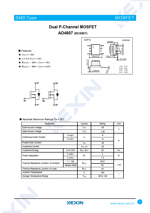 Dual P-Channel MOSFET AO4807 (KO4807)