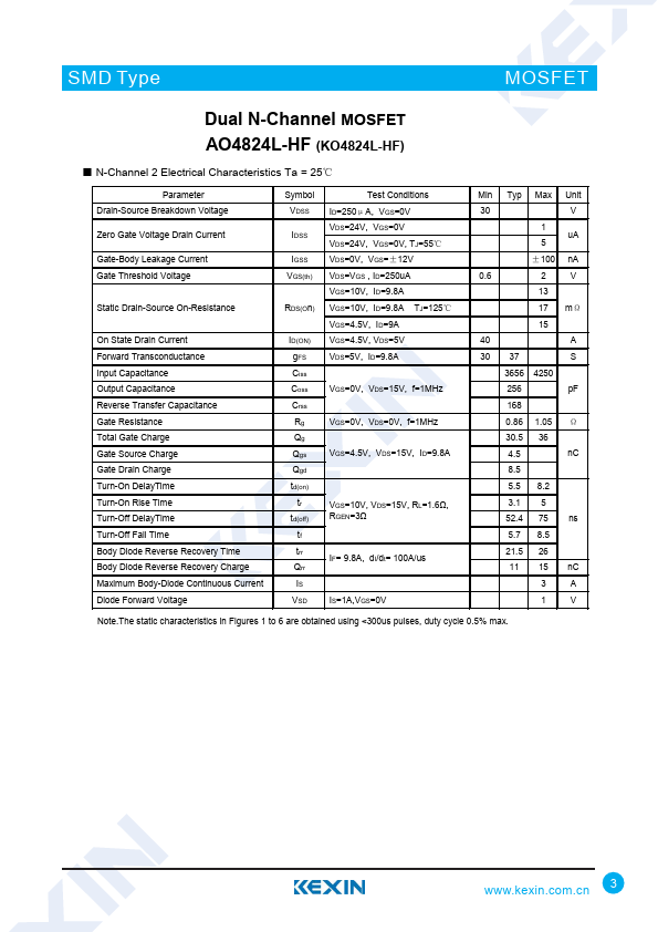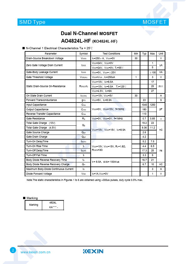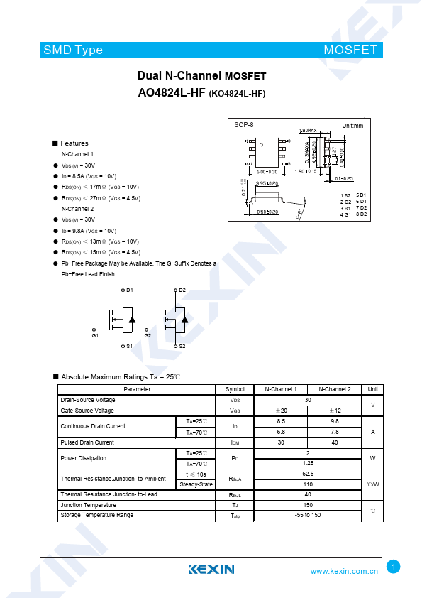 | AO4824L | 30V Dual N-Channel MOSFET | Alpha & Omega Semiconductors |