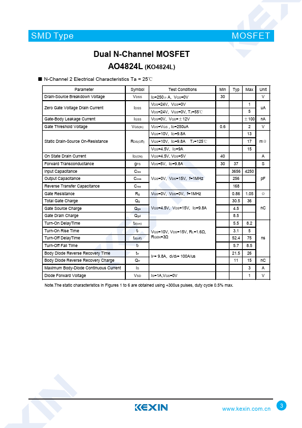 | AO4824 | Dual N-Channel MOSFET | Alpha & Omega Semiconductors |