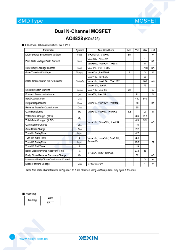 Dual N-Channel MOSFET AO4828 (KO4828)