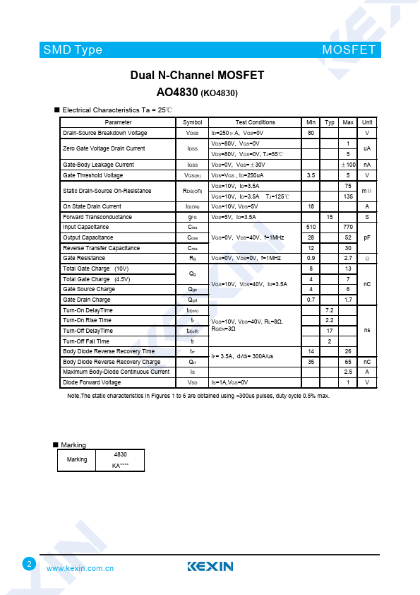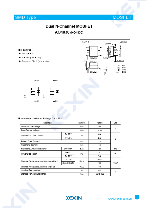 | AO4830 | 80V Dual N-Channel MOSFET | Alpha & Omega Semiconductors |