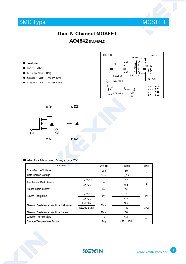| AO4842 | 30V Dual N-Channel MOSFET | Alpha & Omega Semiconductors |