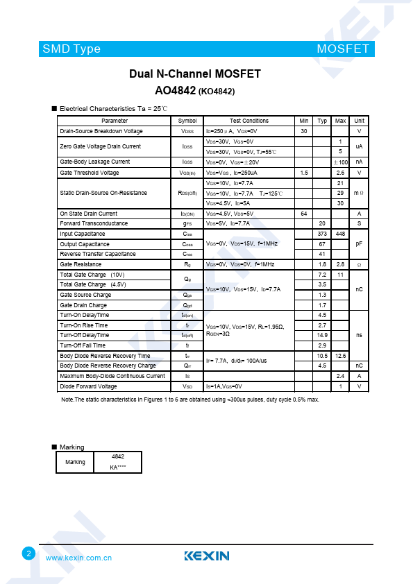 | AO4842 | Dual N-Channel MOSFET | MSKSEMI |