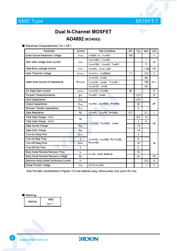 | AO4892 | 100V Dual N-Channel MOSFET | Alpha & Omega Semiconductors |