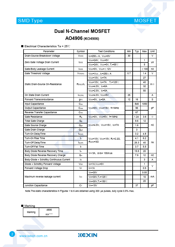 | AO4906 | 30V Dual N-Channel MOSFET | VBsemi |