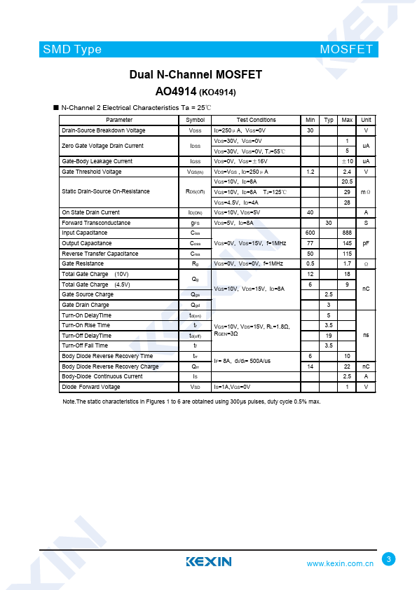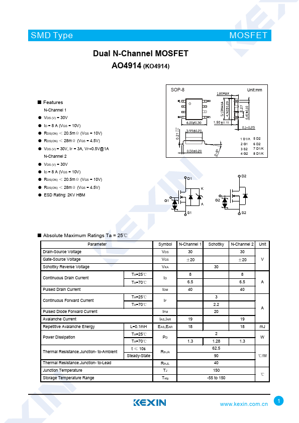 | AO4914 | 30V Dual N-Channel MOSFET | Alpha & Omega Semiconductors |