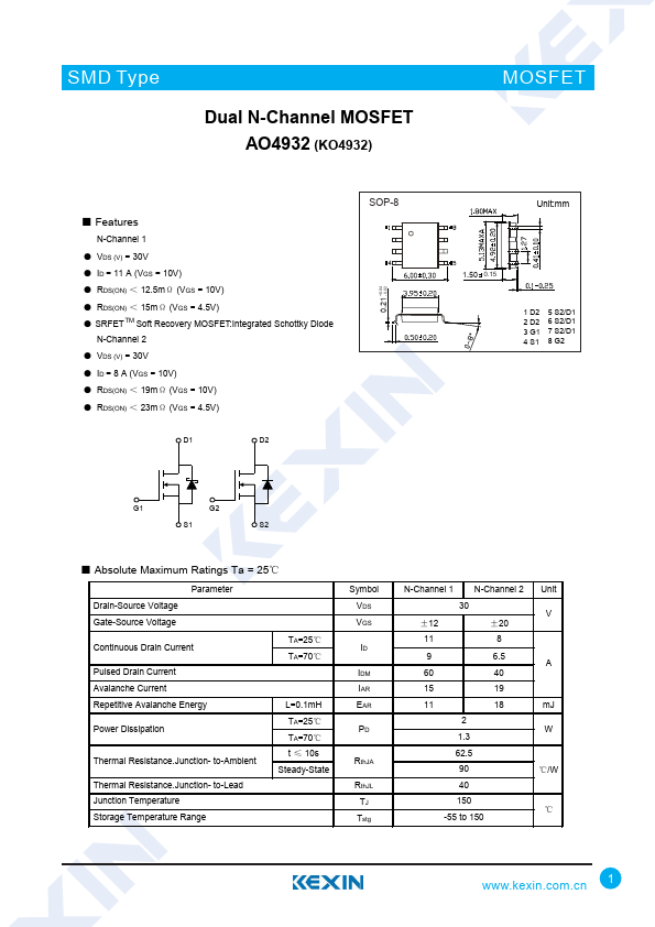 | AO4932 | Asymmetric Dual N-Channel MOSFET | Alpha & Omega Semiconductors |