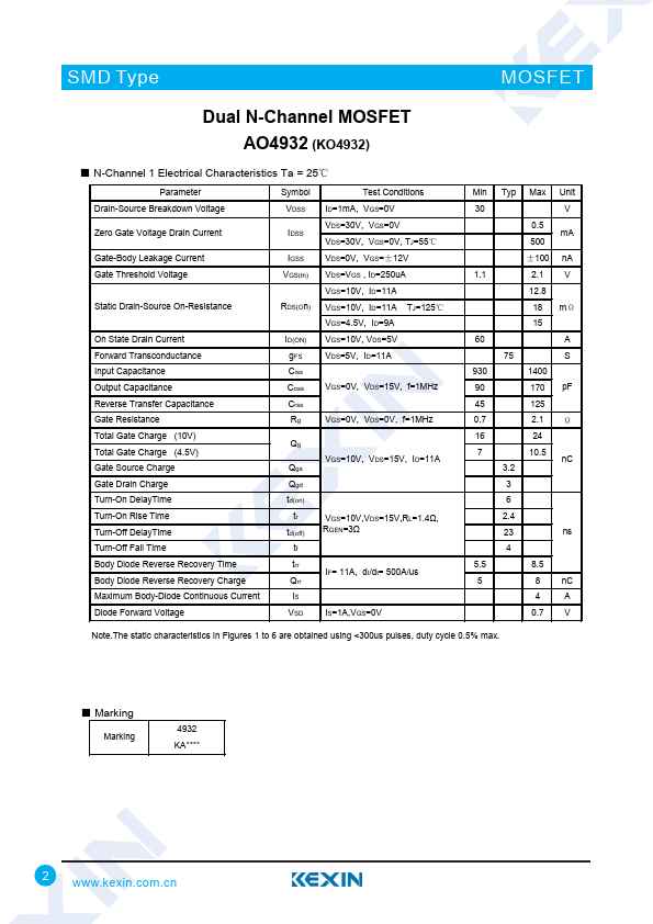 | AO4932 | 30V Dual N-Channel MOSFET | VBsemi |