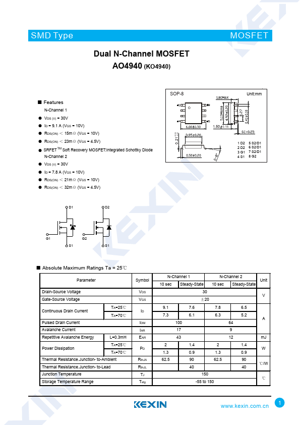 | AO4940 | Dual N-Channel Enhancement Mode Field Effect Transistor | Alpha & Omega Semiconductors |