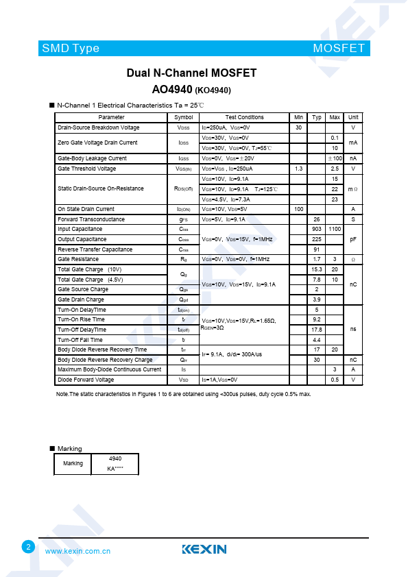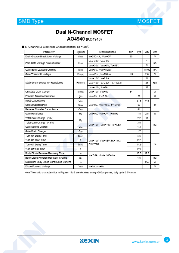 | AO4940 | 30V Dual N-Channel MOSFET | VBsemi |