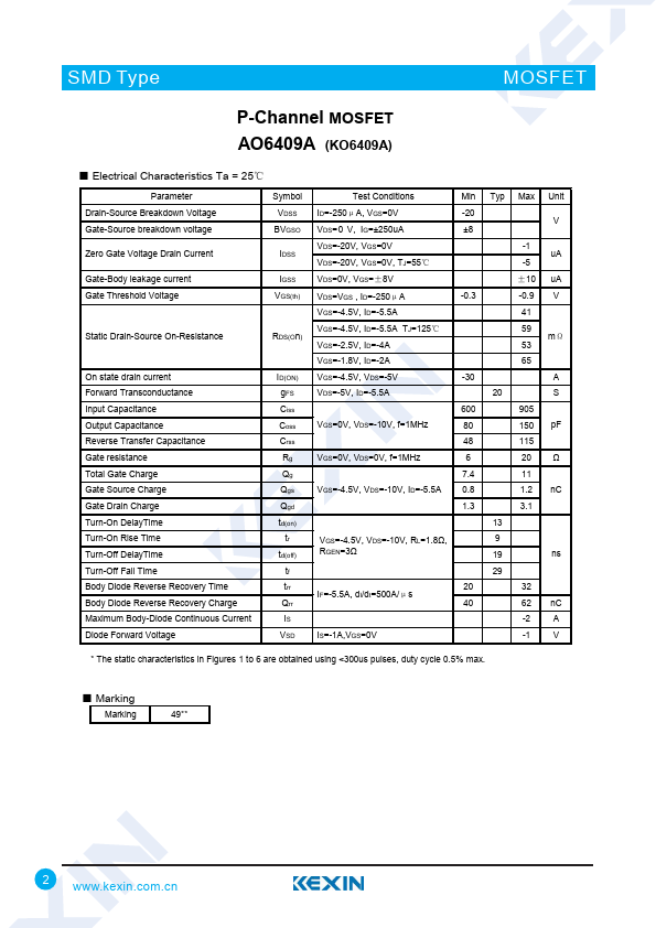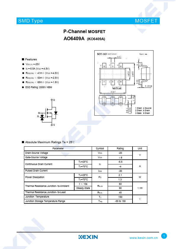 P-Channel MOSFET AO6409A (KO6409A)