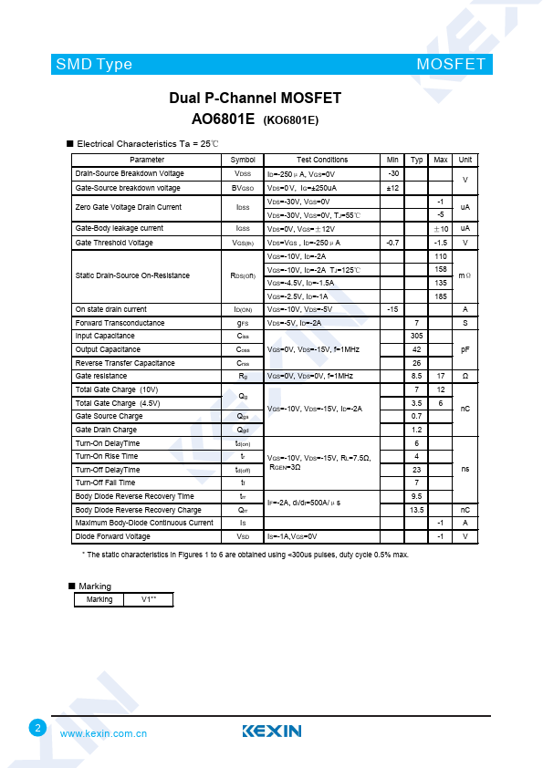 | AO6801E | 30V Dual P-Channel MOSFET | Alpha & Omega Semiconductors |