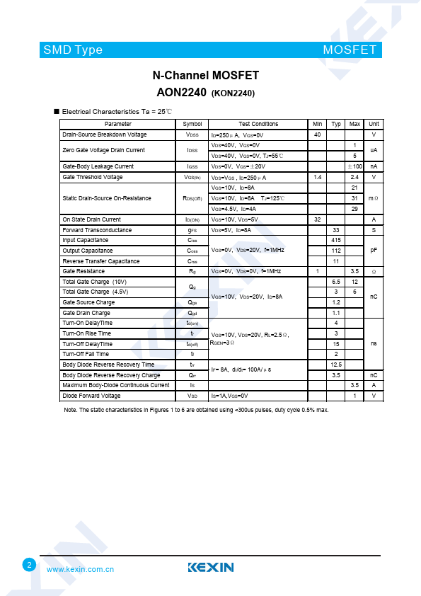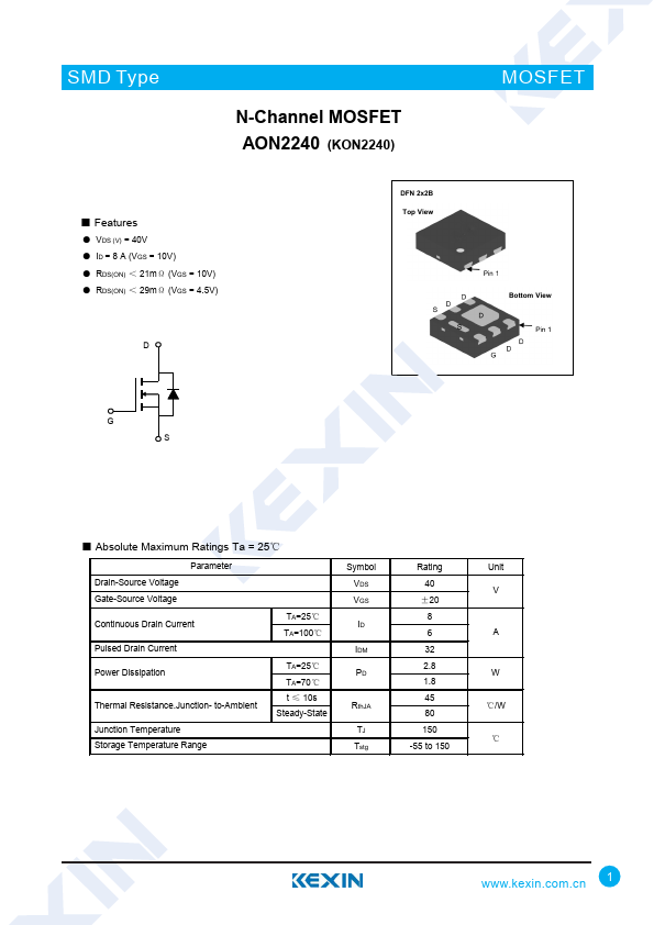 N-Channel MOSFET AON2240 (KON2240)