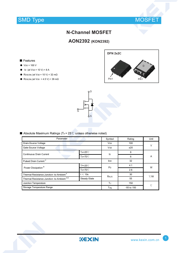 ƽ VDS = 100 V ƽ ID (at VGS = 10 V) = 8 A ƽ RDS(ON) (at VGS = 10 V) < 32 mȍ ƽ RDS(ON) (at VGS = 4.5 V) < 39 mȍ