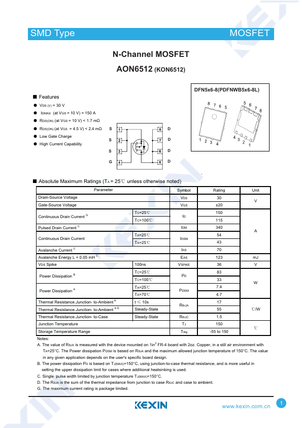| AON6512 | 30V N-Channel MOSFET | Alpha & Omega Semiconductors |